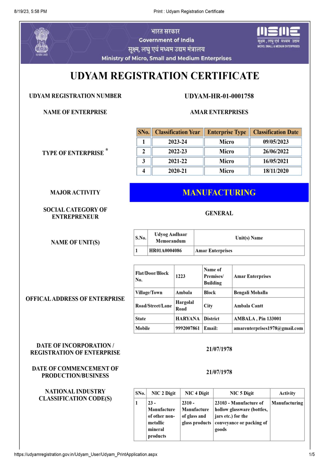 Udyam Registration Certificate