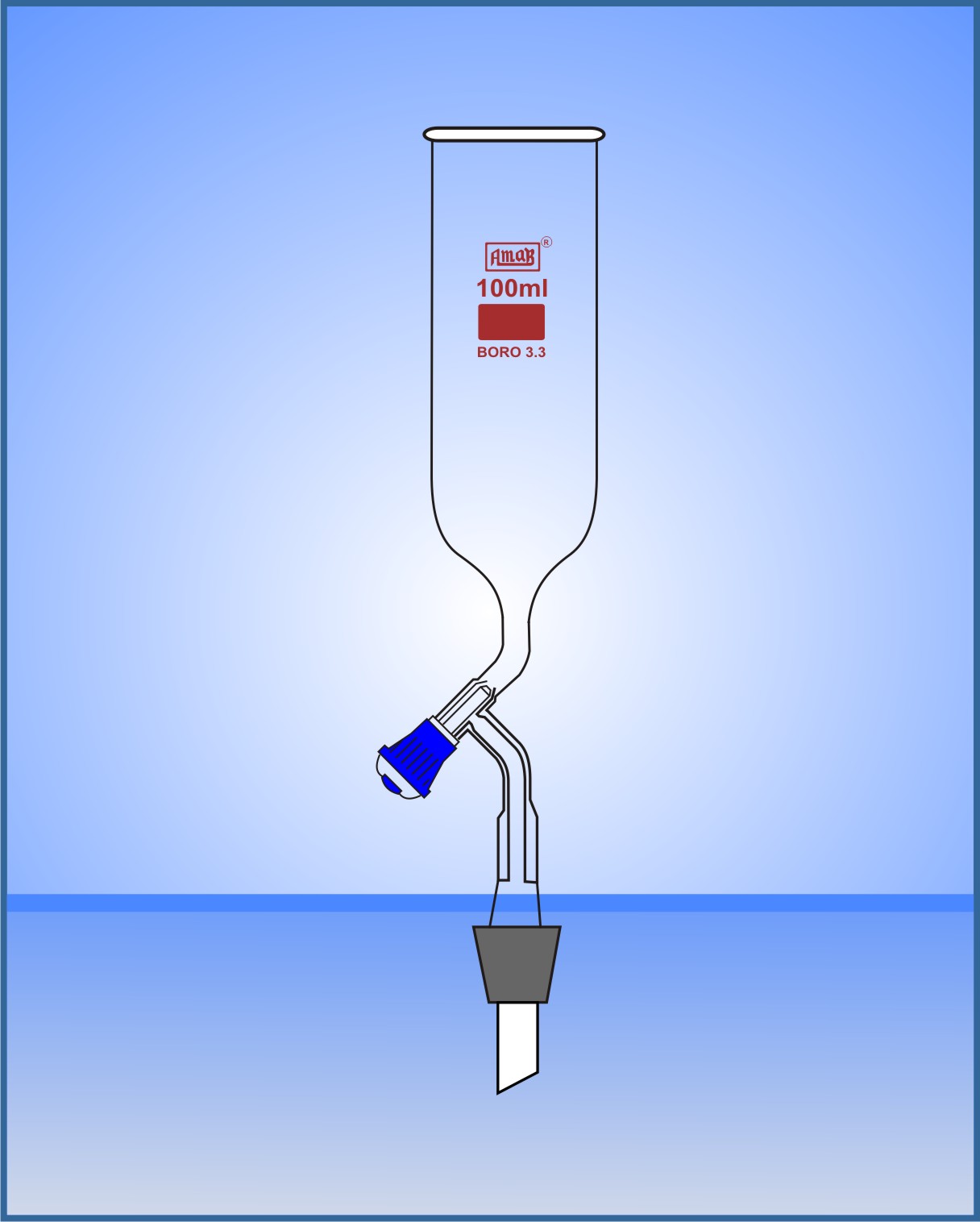 Dropping Funnel, with Glass Stopcock & Stopper, Stem with Cone