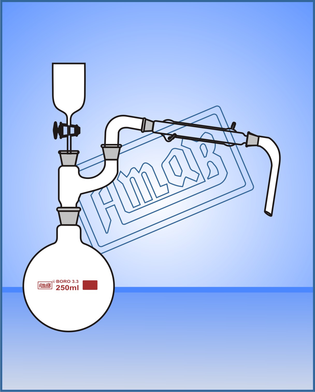 - Consists of R. B. Flask 250 ml., Multiple adapter two neck, Cone bend, Liebig condenser 400 mm, Receiver adapter and Dropping funnel 100 ml.